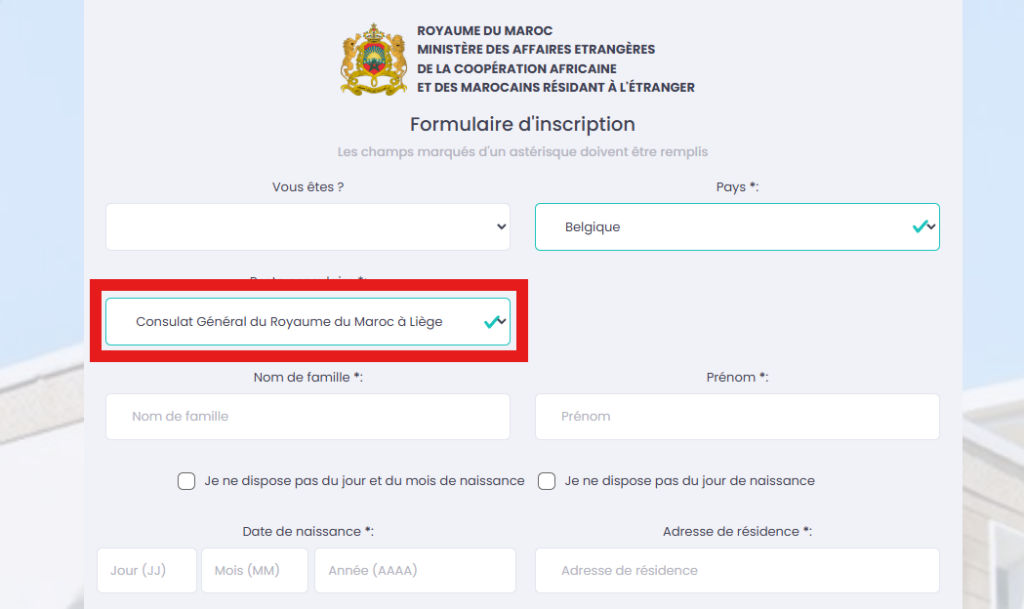 Accédez au site officiel du Consulat du Maroc à Liege en le recherchant sur votre moteur de recherche préféré ou en entrant directement l’URL : https://rdv.consulat.ma/